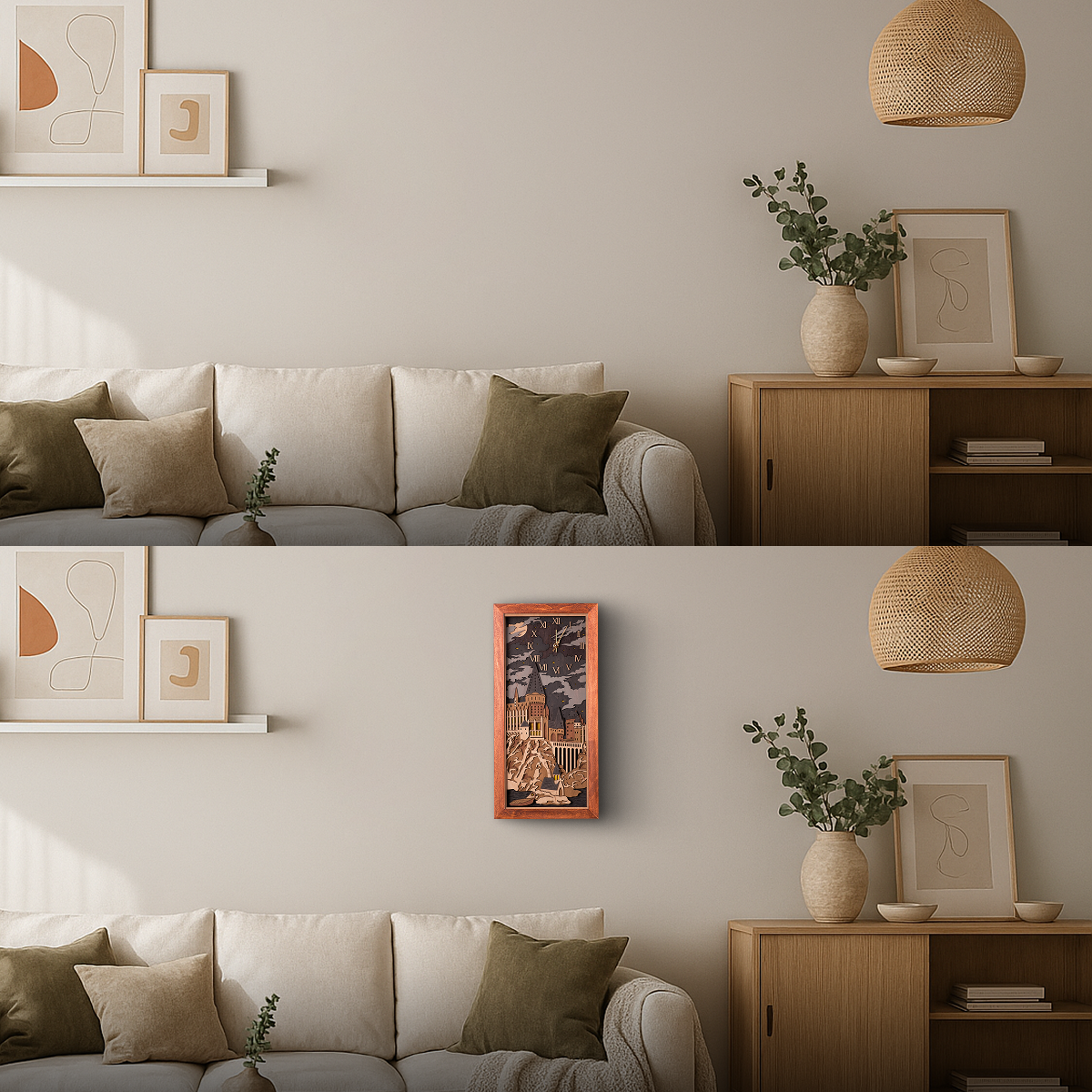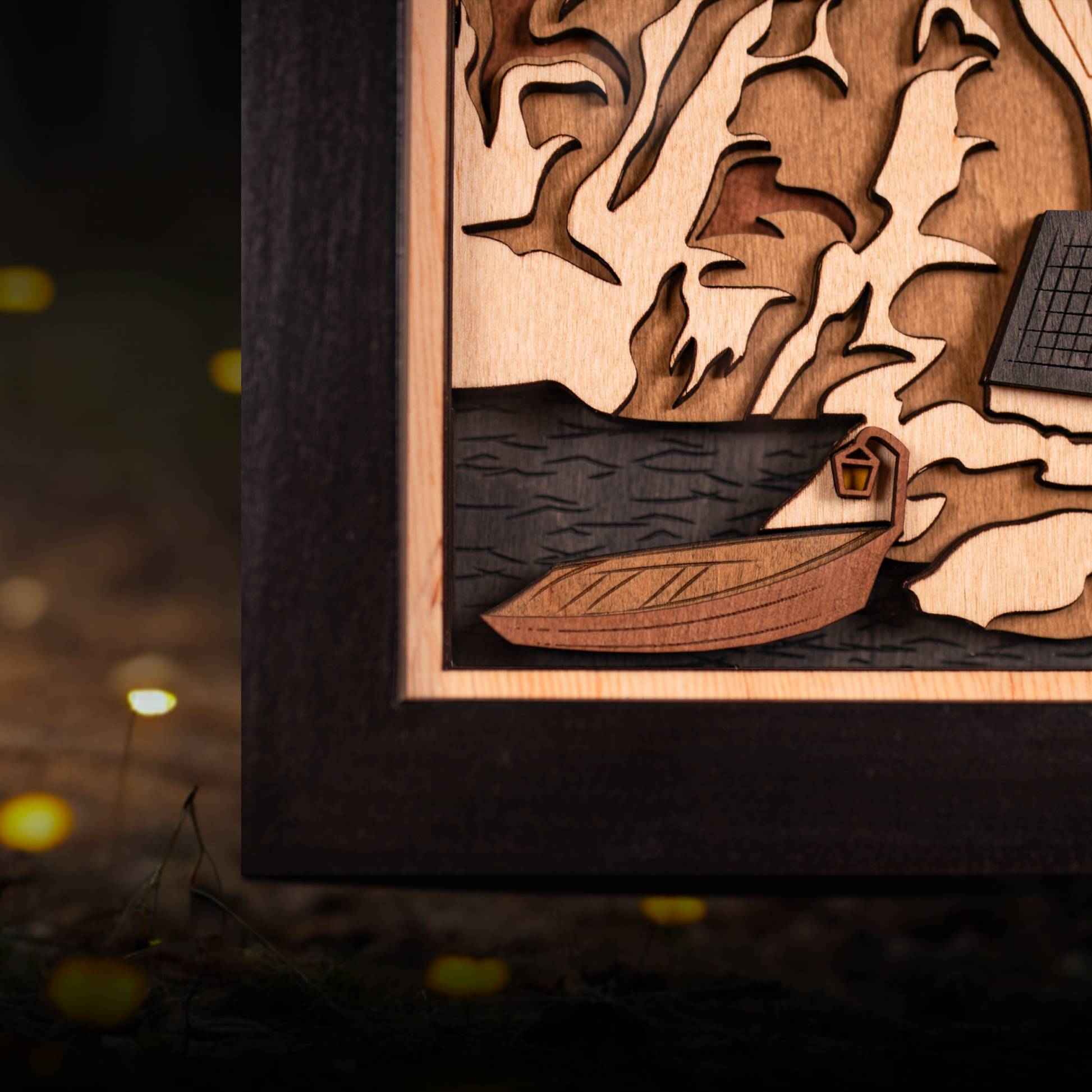 Кожен наш виріб — це ручна робота, створена з натурального дерева з високою точністю та увагою до деталей. Ми самі проєктуємо дизайн, вирізаємо шари лазером, шліфуємо, збираємо, пакуємо.