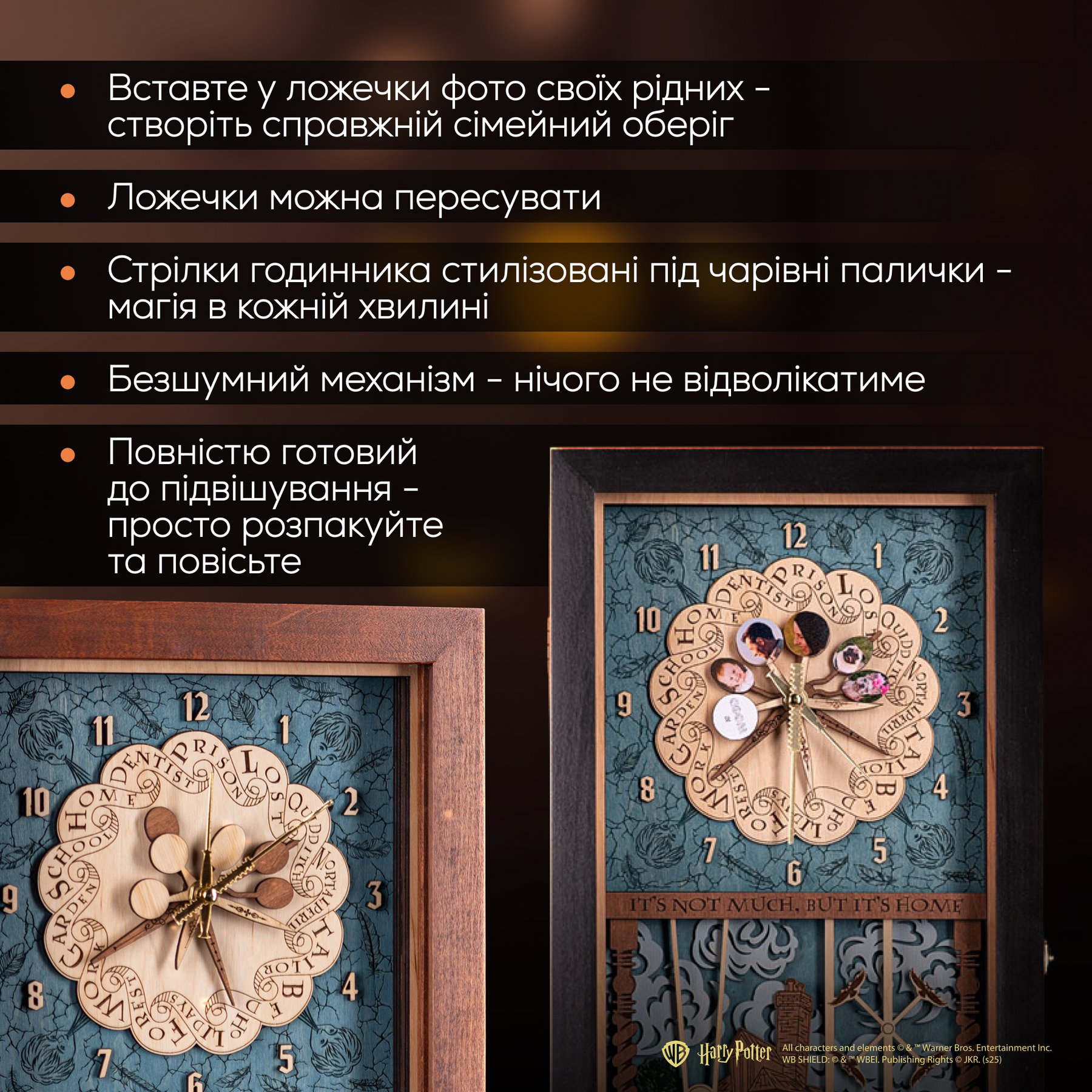 Пориньте у світ мистецтва нашого офіційно ліцензованого годинника Weasley Family™! Це не просто годинник, це портал у чарівний всесвіт, де кожна мить резонує з чарівним шармом.