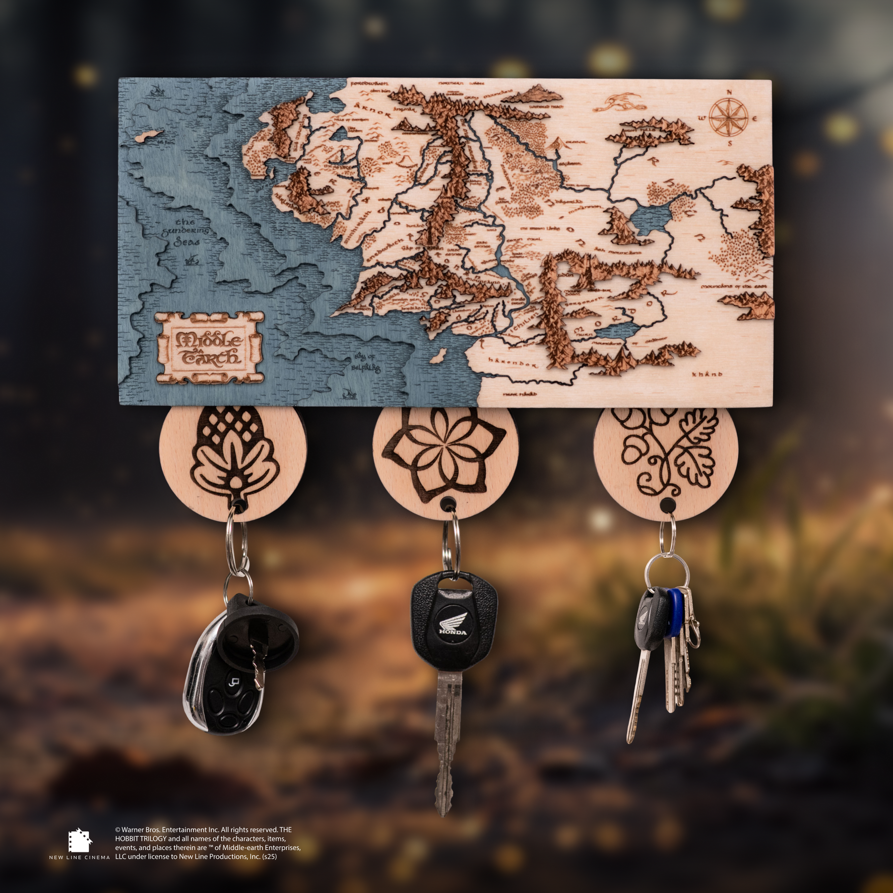 Handcrafted Middle Earth map key holder for Tolkien fans